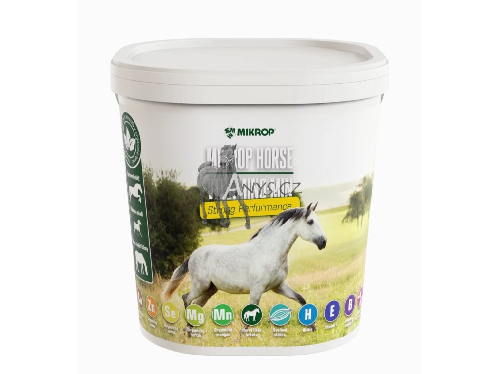 Doplňkové krmivo Mikrop Horse Vit.Amino.Min Strong Performance obsahuje všechny mikroprvky v organické formě, obsahuje i unikátní snadno stravitelný organický hořčík. Mikroprvky, jako je měď, zinek, selen a mangan je vhodné podávat v organické formě, protože molekulární struktura těchto prvků je upravena tak, aby byla pro tělo co nejlépe vstřebatelná a využitelná. Některé prvky, jako je vápník, fosfor nebo jód, naopak tělo dobře přijímá i v anorganické podobě původních minerálů.